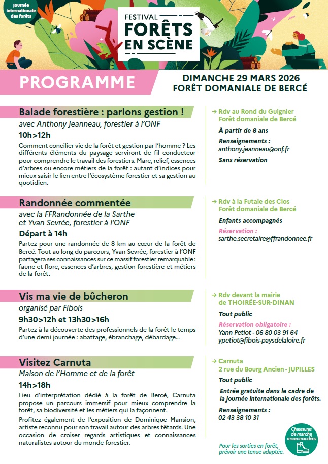 Partez pour une randonnée de 8 km au cœur de la forêt de Bercé. Tout au long du parcours, Yvan Sevrée, forestier à l’ONF partagera ses connaissances sur ce massif forestier remarquable : faune et flore, essences d’arbres, gestion forestière et métiers de la forêt.